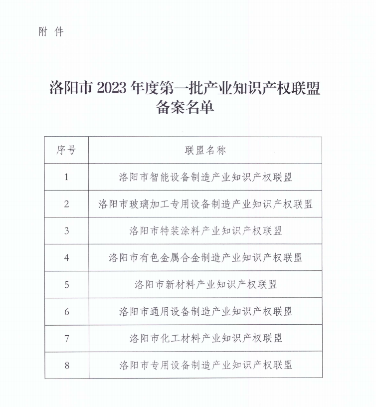 洛阳市2023年度第一批知识产权联盟备案名单已批复